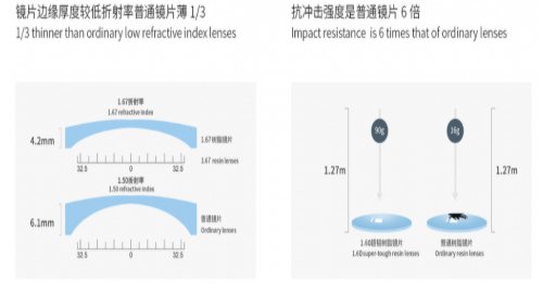 • High refractive index, high definition, high Abbe, and strong resistance to impact