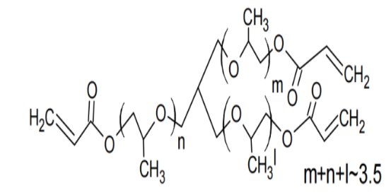 Sinomer® GPTA-3.5B ( G3.5POTA ) is used in a very wide range of energy curing printing inks,overprint varnishes,coatings and adhesives.Compared with ordinary GPTA, the raw material of GPTA-3.5B, propoxylated glycerol, is of bio-based origin.